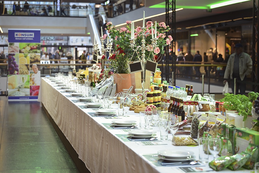 Gestern wurde in der Centrum Galerie die 4. Heimatwoche der KONSUM DRESDEN eG in Zusammenarbeit mit dem Sächsischen Staatsministerium für Umwelt und Landwirtschaft (SMUL) sowie 41 regionalen Partnern feierlich an der „längsten Heimat-Tafel Sachsens“ eröffnet.