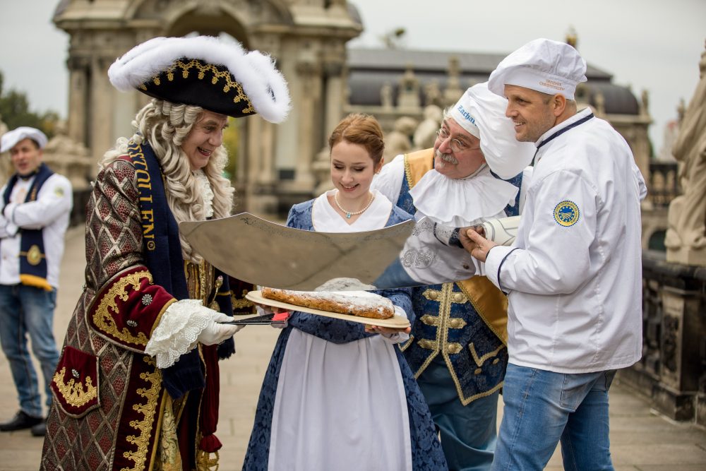 Auch wenn die Öfen in manchen Dresdner Backstuben schon seit einiger Zeit im Stollenmodus laufen – ganz traditionell starten die Bäcker und Konditoren des Schutzverbandes Dresdner Stollen e. V. nach dem Reformationstag in die Stollensaison. In dieser verlassen nicht nur unzählige Dresdner Striezel die Cafés und Läden im Verbandsgebiet – rund vier Millionen waren es im vergangenen Jahr – auch stehen 2016 wieder einige Dresdner Stollen-Highlights im vorweihnachtlichen Programm der Landeshauptstadt: