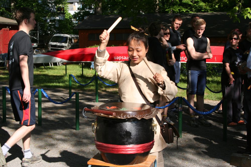 Doch dieses Jahr ist besonders. Denn der Verein hat ein neues Drachenboot gekauft. Direkt nach der Dampferparade gegen 10:30 Uhr wird dem Drachen des Bootes bei einer alten chinesischen Zeremonie symbolisch Leben eingehaucht. Andreas Opfermann vom chinesisch-deutschen Zentrum wird die über 2300 Jahre alte Tradition vornehmen: den Drachen mit dem Schwert erwecken, mit Opfergaben besänftigen, füttern und mit guten Wünschen segnen. Die Taufpaten werden die Augen des Drachens öffnen. Wir freuen uns, dass dafür der Präsident des Stadtsportbundes Herr Lars-Detlef Krüger und der Betriebsleiter des Eigenbetriebes Sportstätten Dresdens Herr Ralf Gabriel zu unseren Gästen gehören. Unter Trommelschlägen wird die Mannschaft das Boot danach für seine Jungfernfahrt zu Wasser lassen. Die so erweckte Kraft des Drachens wird das Boot sicher beschützen und die Mannschaft zu neuen Höchstleistungen motivieren.