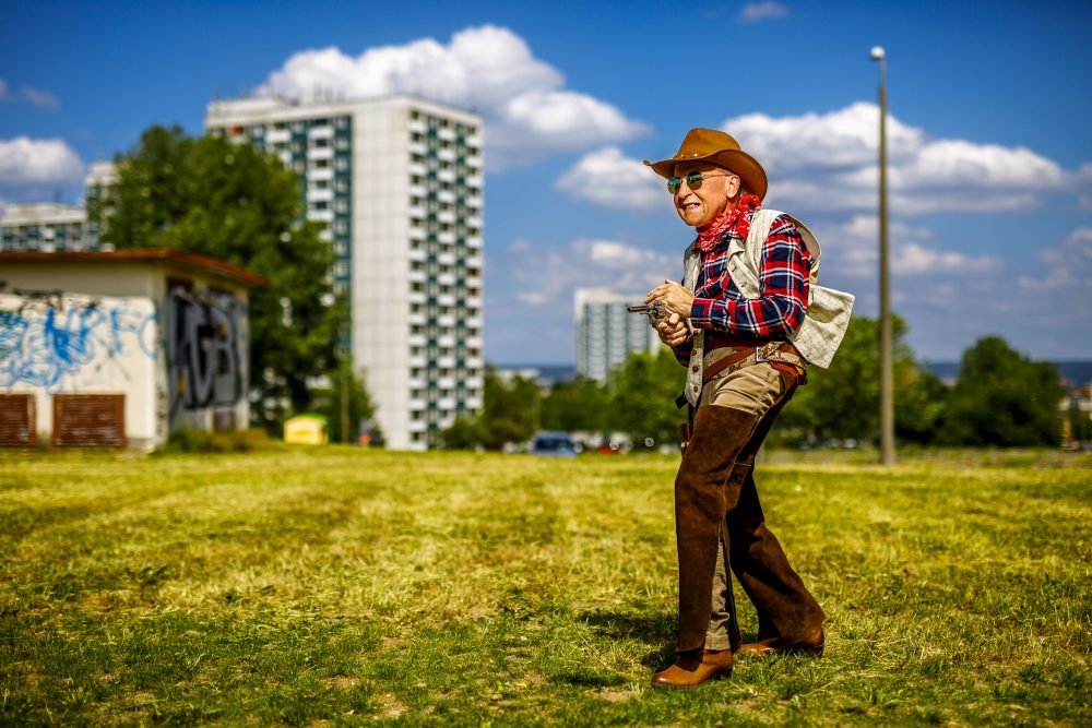 Peter Wei? posiert f?r das Projekt „Sch?nheit im Alter“, durchgef?hrt vom Studio Lamettanest im Ambulanten Pflegezentrum Dresden-Gorbitz-Cotta. Die Protagonisten wurden alle in Gorbitzer Kulisse fotografiert.