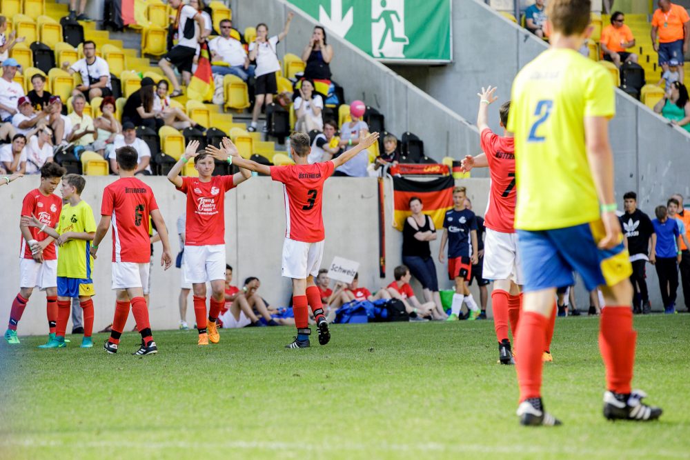 Am kommenden Sonntag kämpfen 42 sächsische C-Jugend-Mannschaften mit Ballgefühl und Teamgeist auf dem „Heiligen Rasen“ der Heimspielstätte der SG Dynamo Dresden bei der SZ-Mini-WM 2018 um den begehrten Pokal. Neben den jugendlichen Mädchen und Jungs, die beim Turnier wieder alles geben werden, stehen auch wieder die Fans im Mittelpunkt. Diese unterstützen Ihre Mannschaften mit bunten Kostümen und lautstarken Aktionen. Die Besucher können sich also wieder auf eine tolle Stimmung freuen und gespannt sein, welche Performances die Fans der Länder wie Schottland, USA und Brasilien vorbereitet haben.