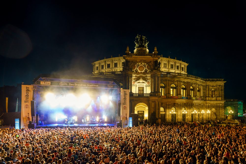 An 15 Orten, auf und vor neun Bühnen bietet das Programm aus Musik, Show, Theater, Familienaktionen, Sport und Gastronomie für jeden Geschmack passende Erlebnisse. Da die Bauarbeiten im Bereich der Augustusbrücke weiterhin andauern, wird nur auf der Altstädter Elbseite gefeiert. Der Stimmung wird das aber keinen Abbruch tun. Bereits im Vorjahr wurde das Festgelände den veränderten Bedingungen angepasst – und gut angenommen.