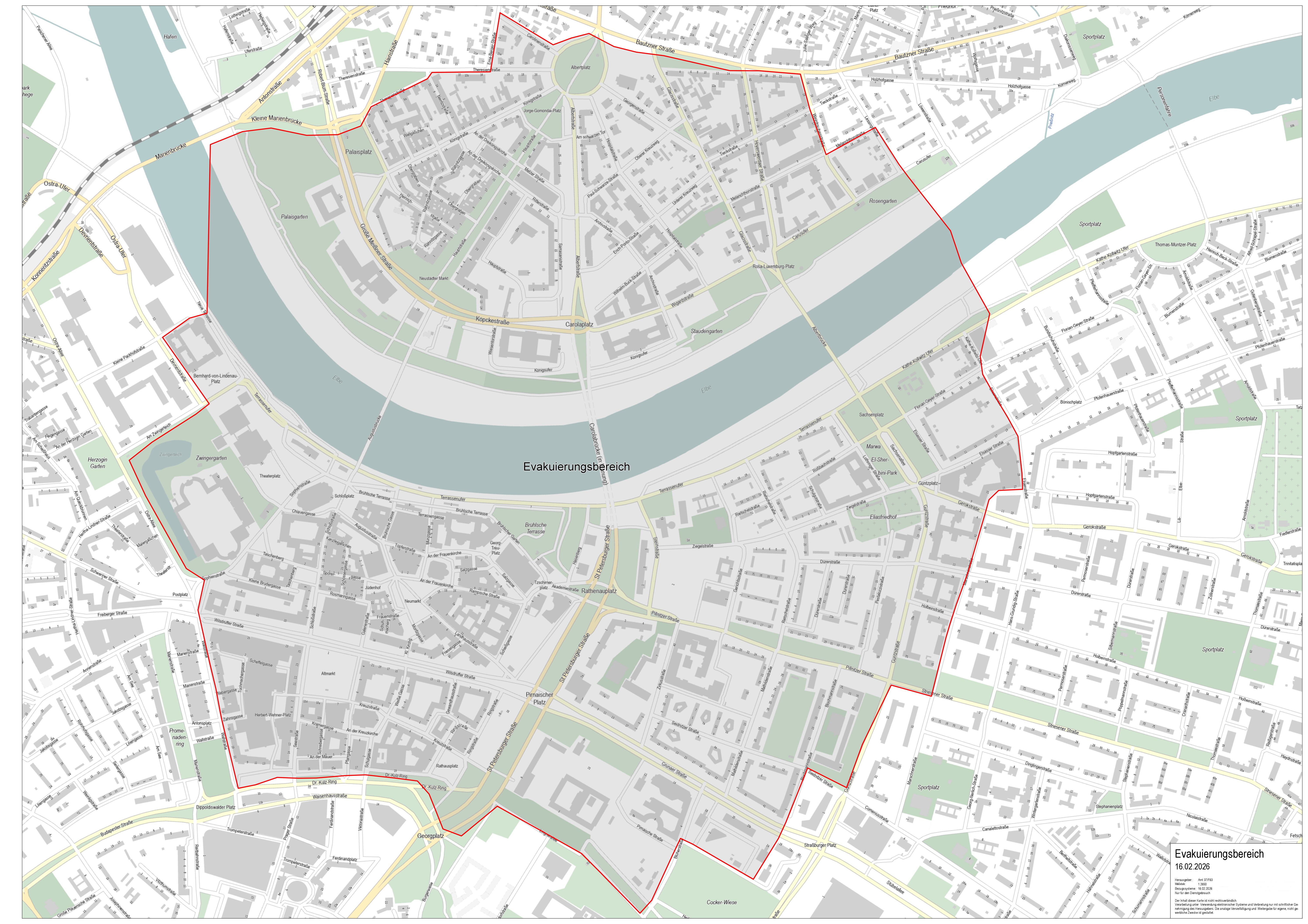 Droht in der 11. Kalenderwoche wieder dieses Szenario? Menschen müssen ihre Wohnungen verlassen, Mitarbeitende und Nutzende von Pflegeheimen, Kitas und Schulen, Landes- und städtische Behörden, dem Gericht, unzähligen Büros, selbst der Polizeibehörde müssen ins Homeoffice wechseln oder zu Hause bleiben. Rund 18.000 Menschen wären im Altstadtbereich und auf Neustädter Seite von einer möglichen Evakuierung betroffen, sollten sich die beiden „Störstellen“ auf Neustädter Seite als Blindgänger aus dem 2. Weltkrieg erweisen.