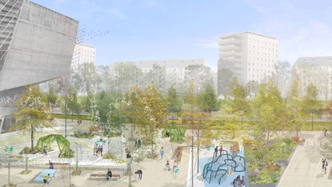 Gut Ding will Weile haben. Erst recht, wenn es um (UM)Bauvorhaben geht. Es ist jetzt fast sechs Jahre her, seit im Juni 2020 zwei Studenten erste Ideen für die Platzgestaltung der Betonwüste hinter dem modernen Kino vorstellten. Die Beiden wohnten damals nicht nur im direkten Umfeld, sondern saßen für die Grünen auch im Stadtbezirksbeirat Altstadt. „Hier könnte ein Spielplatz für Kinder gebaut werden, dazu Outdoor-Sportgeräte für Erwachsene, es sollten Bänke aufgestellt und ein sandgeschlämmter Weg zwischen Prager Straße und der Haltestelle Walpurgisstraße angelegt werden“, schlugen sie damals vor.